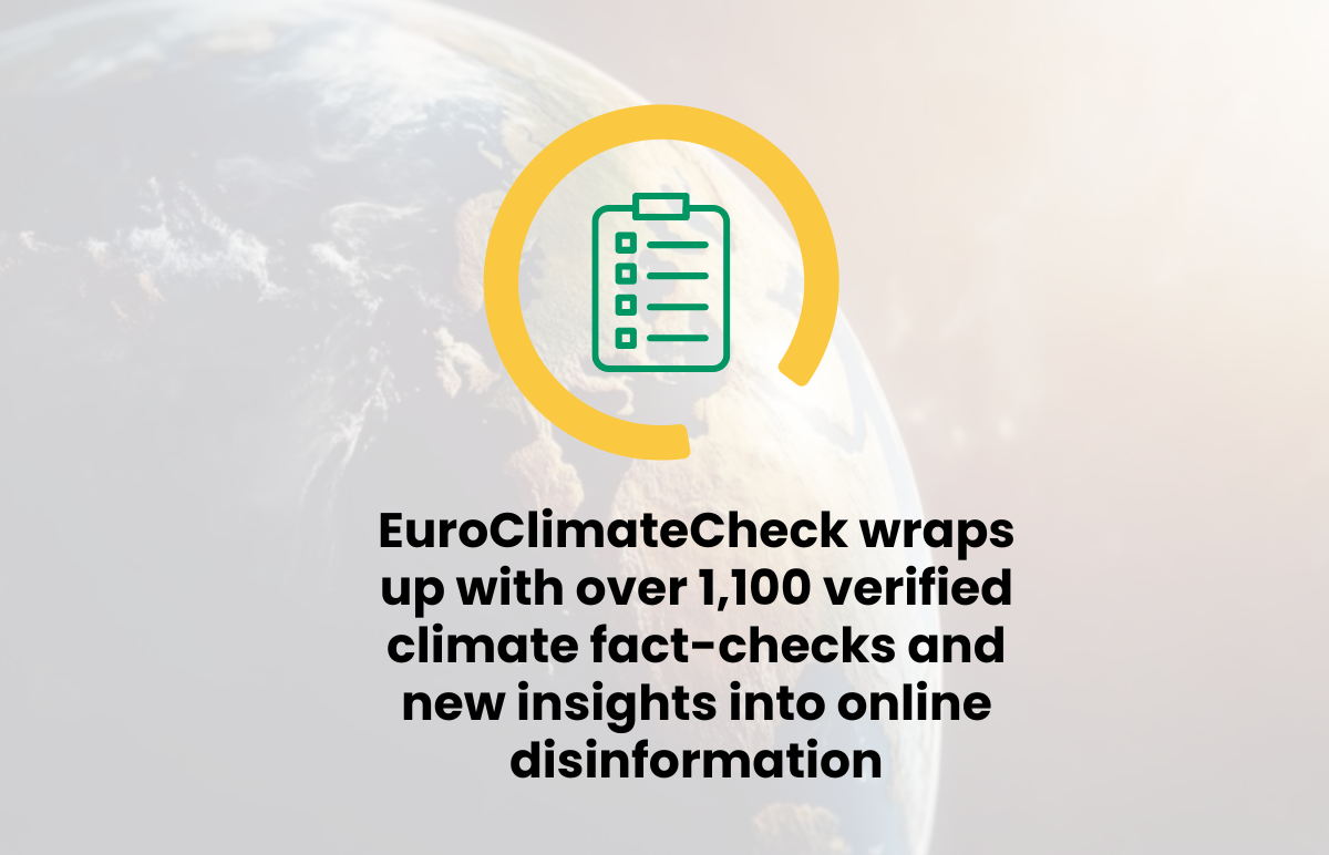 After 18 months of work, EuroClimateCheck concludes, having created the largest cross-European database of climate-related fact-checks. The project brought together 30 organisations that collectively published 1,175 verified articles and contributed more than 80,000 data points.
