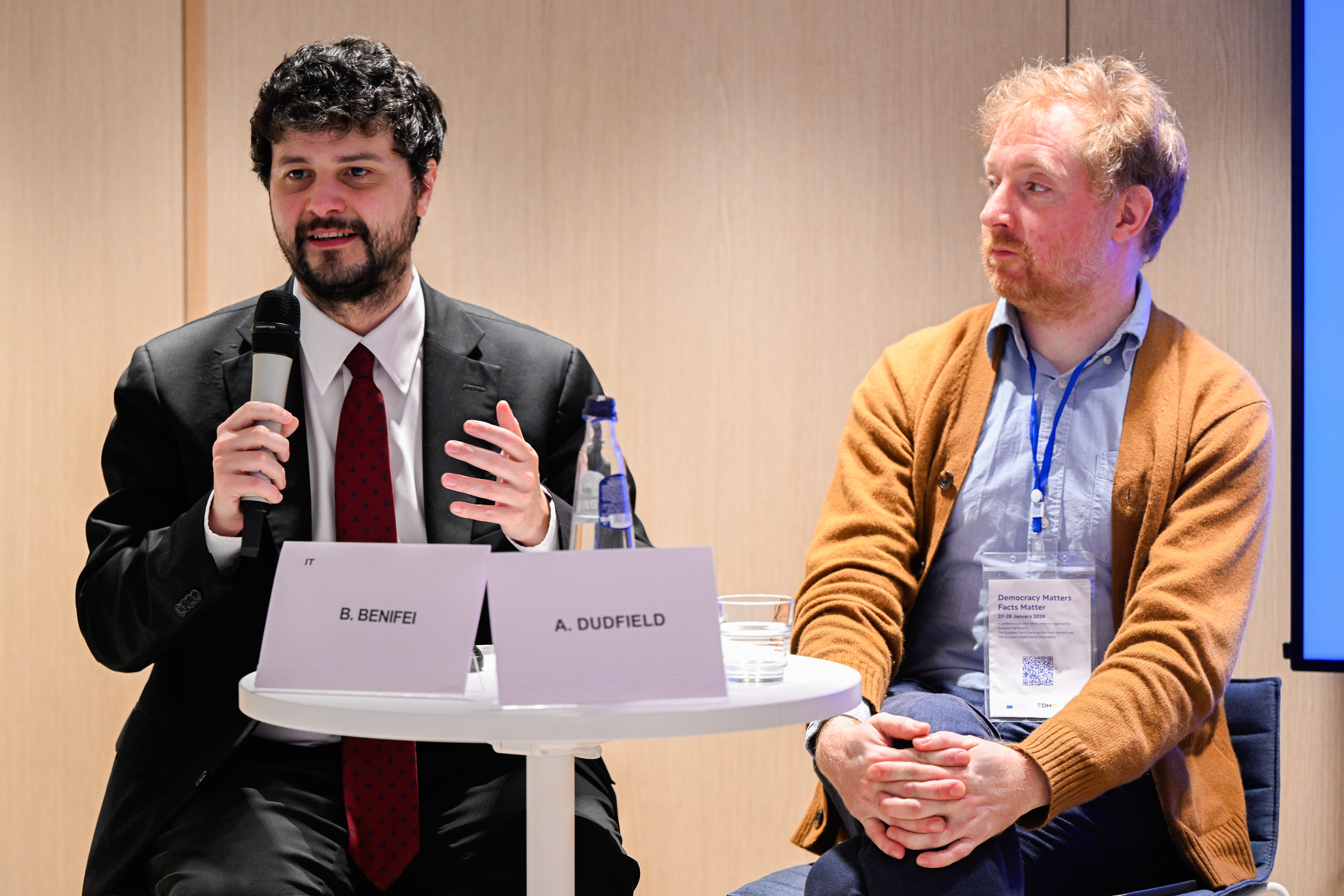 MEP Brando Benifei, EP rapporteur AI Act (Left) and Andrew Dudfield, Head of AI, Full Fact (Right) © European Union 2026 – Source : EP